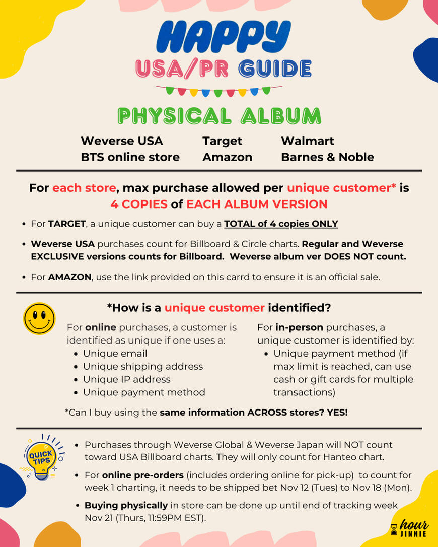 *Shipping dates (NOT date of arrival) should be by Nov 18 (Mon) to count for Billboard. If later than that, we encourage to buy in-person from Nov 15 to Nov 21.